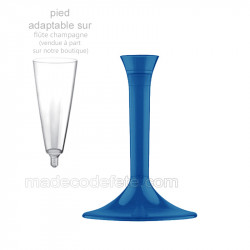 Pied de verre bleu translucide pour tous vos événements, mariage, anniversaire, baptême, communion, fête d'entreprise et tous vos thèmes. Ce pied de verre est conçu pour s'adapter sur nos flûtes à champagne (flûte vendue séparemment). Pied vendu à l'unité.