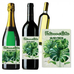 Etiquette autocollantes pour bouteilles pour fête thème madras vert, avec motifs tropicaux. A coller sur vos bouteilles vin ou champagne, fonction repositionnable Dim : Etiquette vin : 12,5 cm hauteur x 9,5 cm largeur. Etiquette champagne : 13 cm largeur x 9 cm hauteur. Vendues en lot de deux étiquettes bouteilles vin OU deux étiquettes bouteilles...