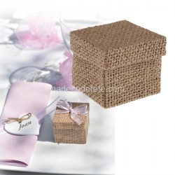 Panier naturel pour dragées parfait pour un contenant dragées original et naturel pour vos ambiances champêtre ou thème nature. Contenance : une dizaine de dragées environ (non comprises). Matière : rigide recouvert de toile avec sachet organza en intérieur à fermeture par lien pour vos dragées. Dimensions: 10 cm x 7 cm x 4,5 cm.