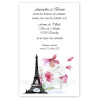 Ici l'or est remplacé par le noir. Et nous parlons bien sûr du chemin de table Paris présenté sur un chemin de table classique en intissé et de couleur noir également. La tour eiffel est ici en argenté et elle sera également présente sous la forme de contenant dragées en plexi transparente ou en ballotin carton et personnalisé.