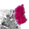 Du rose et blanc nacré seront les principales couleurs pour le nappage, les assiettes design jetables, les verres, et sur quelques accessoires qui orneront la table comme ce carrosse à dragées, le photophore métal , les quelques plumes et sur les menus décoratifs.