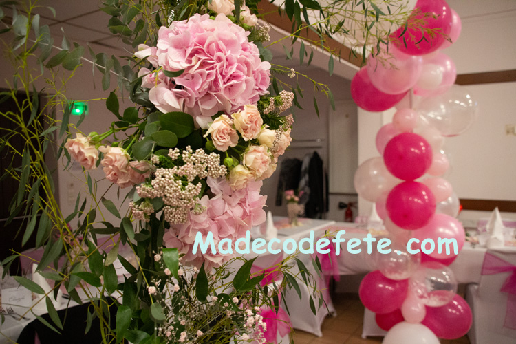Du vieux rose, du rose fuschia, un côté un peu vintage, du rose pastel, des ballons roses, nacrés, transparents avec des confettis en intérieur, chemin de table, pétales de rose, de beaux bouquets et présentations florales sur les tables, porte nom original pour les enfants...voilà une décoration très tendance pour créer une belle et chaleureuse ambiance pour ces deux évènements et fêtes : le baptême de la petite lily et l'anniversaire de mariage (10 ans) Vincent et de bopha.