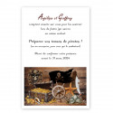 Cet encart invitation sur le thème du pirate avec ses motifs carte au trésor, coffre empli de pièces d'or, drapeau tête de mort pirate, sabre, étoile de mer et coquillages est à glisser dans le faire-part d'invitation. Il vous permettra de sélectionner certains de vos invités qui resteront ensuite au repas. Il est vendu imprimé par nos soins