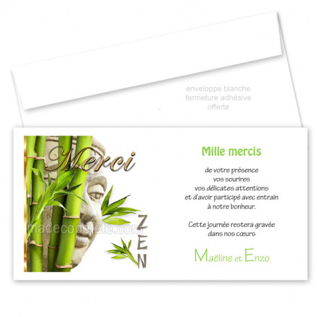 Ce carton de remerciement thème bouddha zen viendra clôturer votre événement sur le thème zen