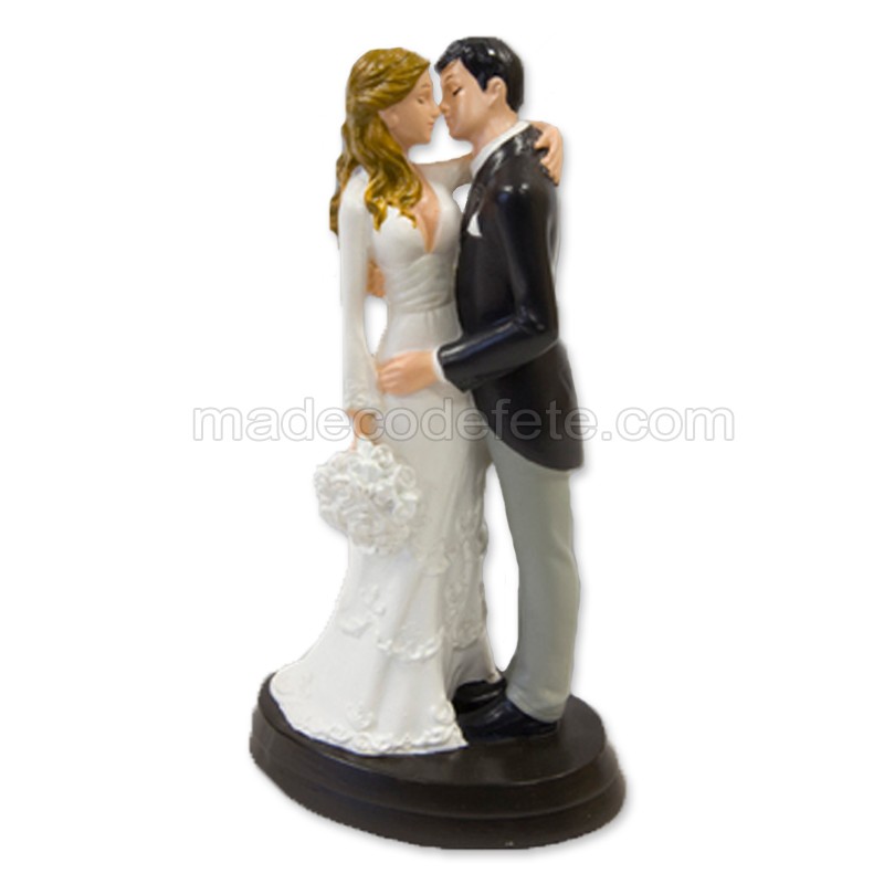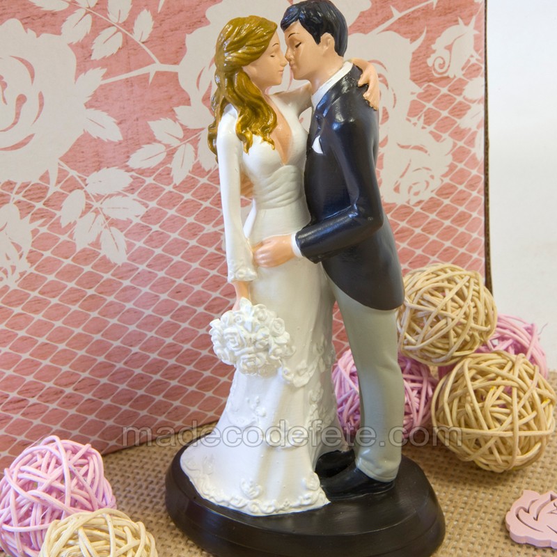Laissez-vous tenter par cette belle figurine de mariage couple de mariés enlacés pour la présentation de votre pièce montée ou gâteau de mariage ou encore à poser sur votre gâteau ou sur la table à dessert.