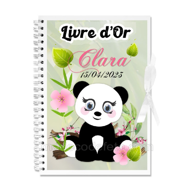 Urne pour enveloppes thème panda, motifs petite panda assise sur fond de branchages, feuillages et fleurs zen... personnalisée avec vos textes, photo de l'enfant si souhaitée. Prototype adressée pour validation avant impression. Matière : valise cartonnée. Dimension de la valise : 24 cm x 16 cm x 10 cm.