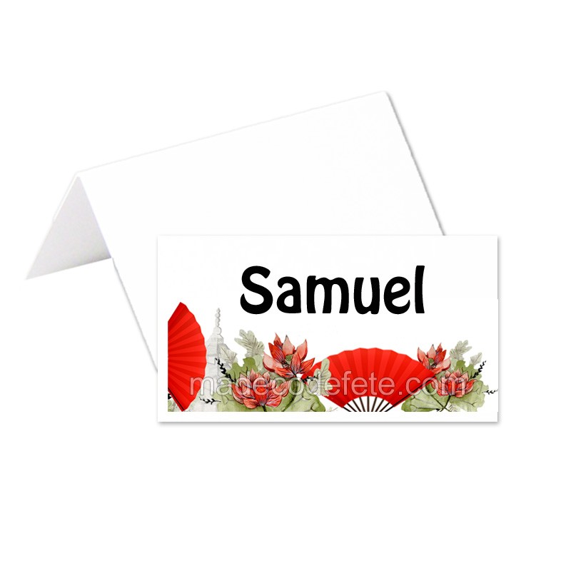 Carton de remerciement ambiance Japon motif pagode, éventail rouge, fleurs rouges. Ce carton remerciement sera parfait pour remercier vos invités une fois votre réception terminée. Dimensions : 20 cm sur 10 cm. Livré personnalisé avec enveloppe blanche. Enregistrez d'abord vos données puis ajoutez au panier