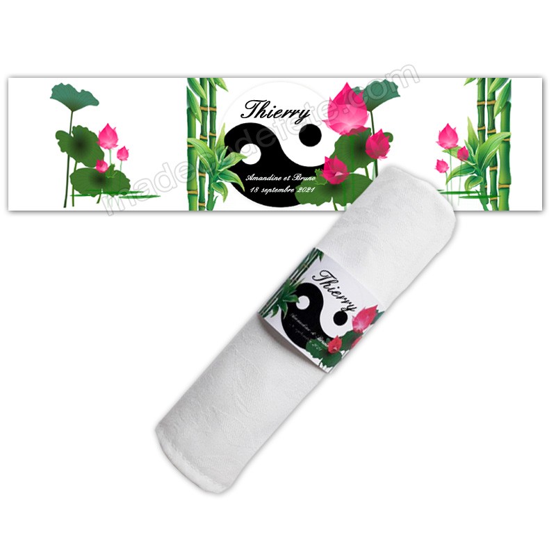 Cet article est un produit de carterie réalisé personnalisé ou non sur demande uniquement. Ni repris, ni échangé. Rond porte serviette personnalisé cartonné pour orner vos tables de mariage, anniversaire, baptême, communion sur le thème du zen et du yin et yang