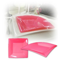 Assiette design fuchsia légèrement incurvée pour toutes réceptions. Qualité ++ pour ces assiettes réutilisables, micro-ondulables, lavables en lave-vaisselle et passages freezer). Matière : polypropylène thermorétracté (résistance accrue aux chocs et aux températures) Vendue en lot de 8 assiettes. Dimensions : 18 x 18 cm